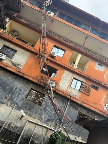 En effet, le pylône, les câbles reliant l’antenne à l’émetteur ainsi que les dipôles ont été fortement endommagés par un vent violent.